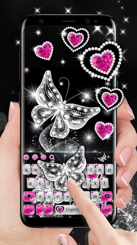 Install this shiny diamond butterfly keyboard will bring you to the shiny butterfly and diamond hearts world of shiny diamond butterfly. How cute to make your phone cool and trendy and show off in front of your friends!