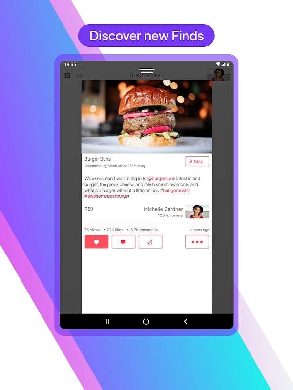 * Follow friends and businesses in a city and share great finds.