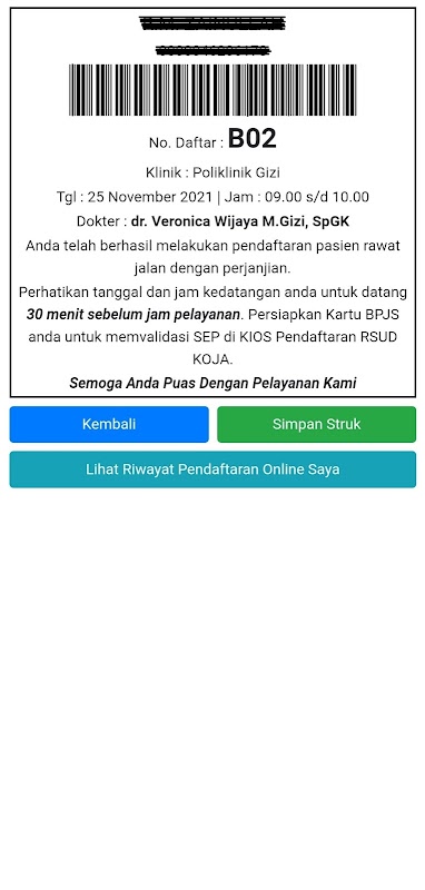 Koja Hospital Online Registration Information System (Agreement) specifically for JKN-KIS patients or patients with BPJS cards who already have medical records at Koja Hospital (old patients) and have active referrals to Koja Hospital from referring FKTP-RS.
