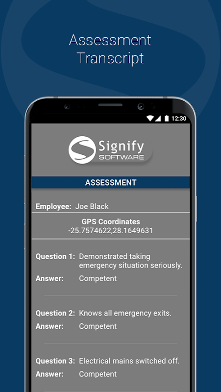 Signify Online Assessmentアプリを使用すると、評価者はAndroidモバイルデバイスを使用して、どこでも職場の観察(実際の評価)を行うことができます。評価はモバイルデバイスにダウンロードし、オフラインで完了することができます。