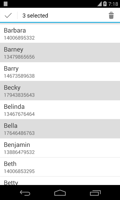*複数の連絡先を選択し、(Androidのバージョン3.0以上の場合)バッチ操作を実行
