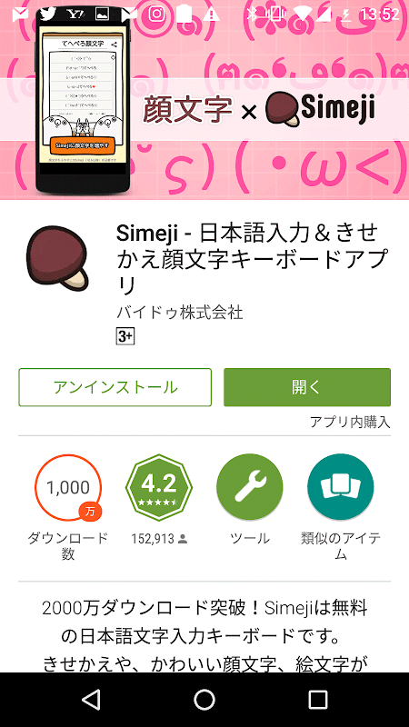 APKPure は署名検証を使用して、ウイルスフリーの Simeji顔文字パック てへぺろ編 APK ダウンロードを保証します。