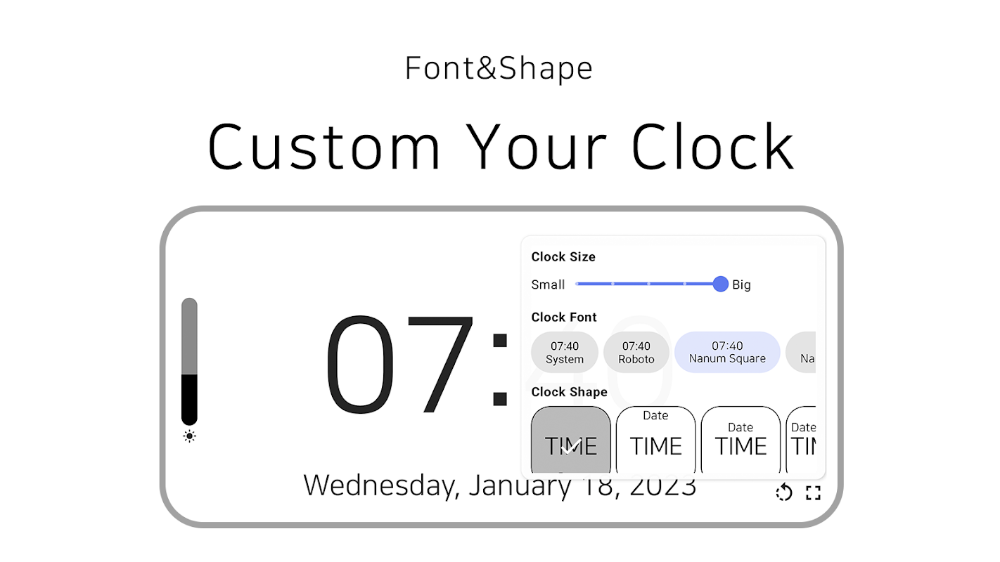 高品質でモダンなフルスクリーン時計。未使用のタブレットでデスククロックを作成します。
