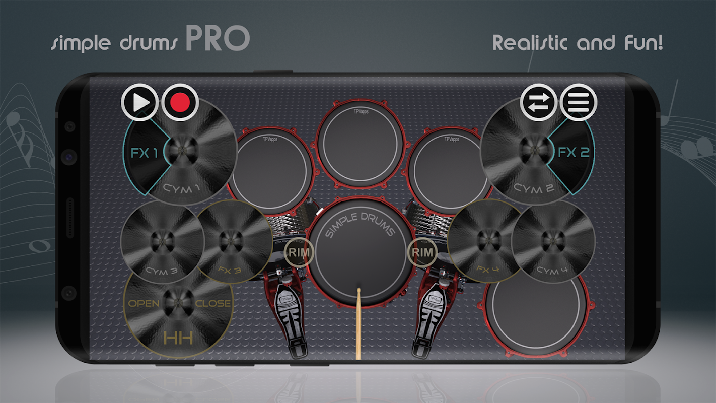 Simple Drums Pro でクールな音楽を作成しましょう! Simple Drums Pro は、Android スマートフォンでドラム演奏を楽しめる素晴らしい楽器アプリです。リアルで楽しく、とても使いやすいです。私たちのクールな楽器アプリには、ロック、メタル、ヒップホップ、ジャズの 4 つの異なるドラムセットが付属しています。このリズムマシンには、デバイスの MP3 ソングの再生、プロ仕様のメトロノーム、シンバルやタムの変更、ドラムピッチコントロール、マルチタッチなど、多くの高度な機能が付属しています。初心者からプロドラマーまで最適なドラムキットです。当社の仮想ドラムパッド/ドラムアプリが提供するすべての機能については、詳細をご覧ください。