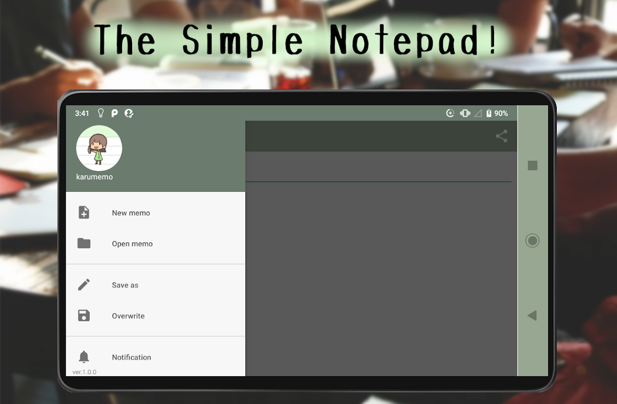 極限までシンプルを追求したメモアプリです!パソコンのメモ帳のようにテキストファイルの保存・編集ができます。余計な機能が無いので軽量でサクサク!