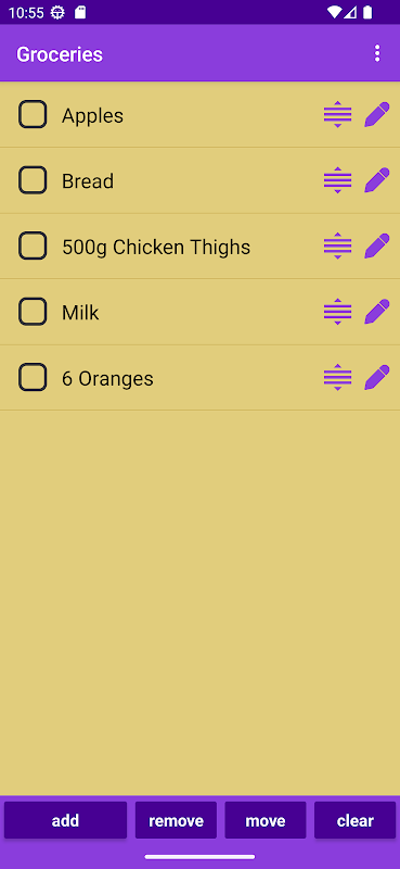 編集可能なアイテムデータベースから選択してください - 、独自の項目を追加するには、リストを作成して、買って/完了時にそれらをオフにチェック!