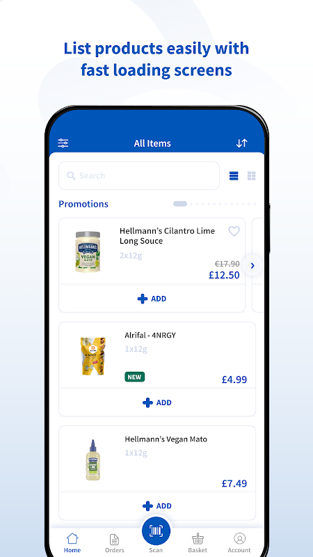 スマートな注文 – アイテムをすばやくリストしてバスケットに追加します。