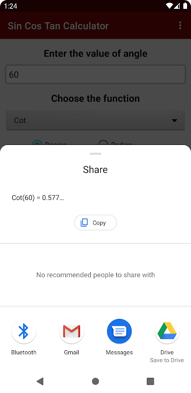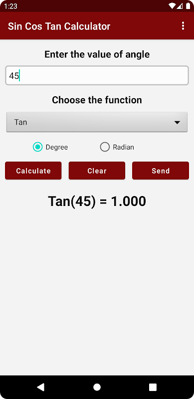 値を度またはラジアンで入力し、関数を選択するだけです。結果は即座に表示されます。