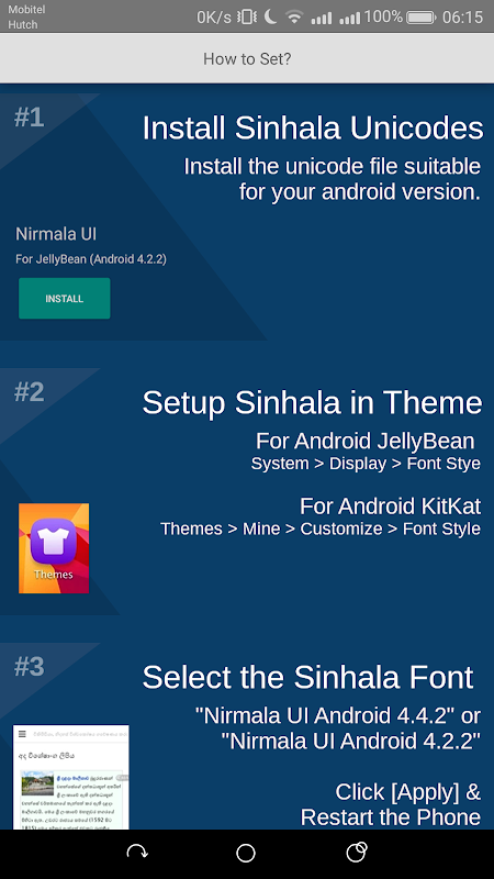 * Set Sinhala Unicode as your System 'Font Style' using the given instructions and Restart the phone