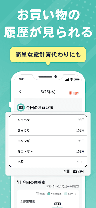・管理栄養士監修のもと、お買い物内容をもとに栄養バランスをチェック。不足しがちな栄養素を補う食品を提案して、無理のない食生活改善をサポートします。