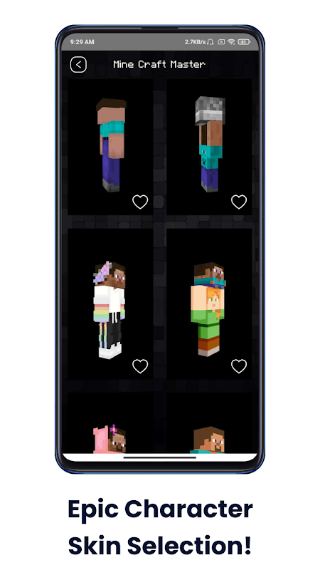 ここで最もお気に入りのスキンを選択してください!ハートを押すと、スキンがお気に入りのスキン コレクションに移動します。コレクションから削除するには、もう一度ハートをクリックするだけです。