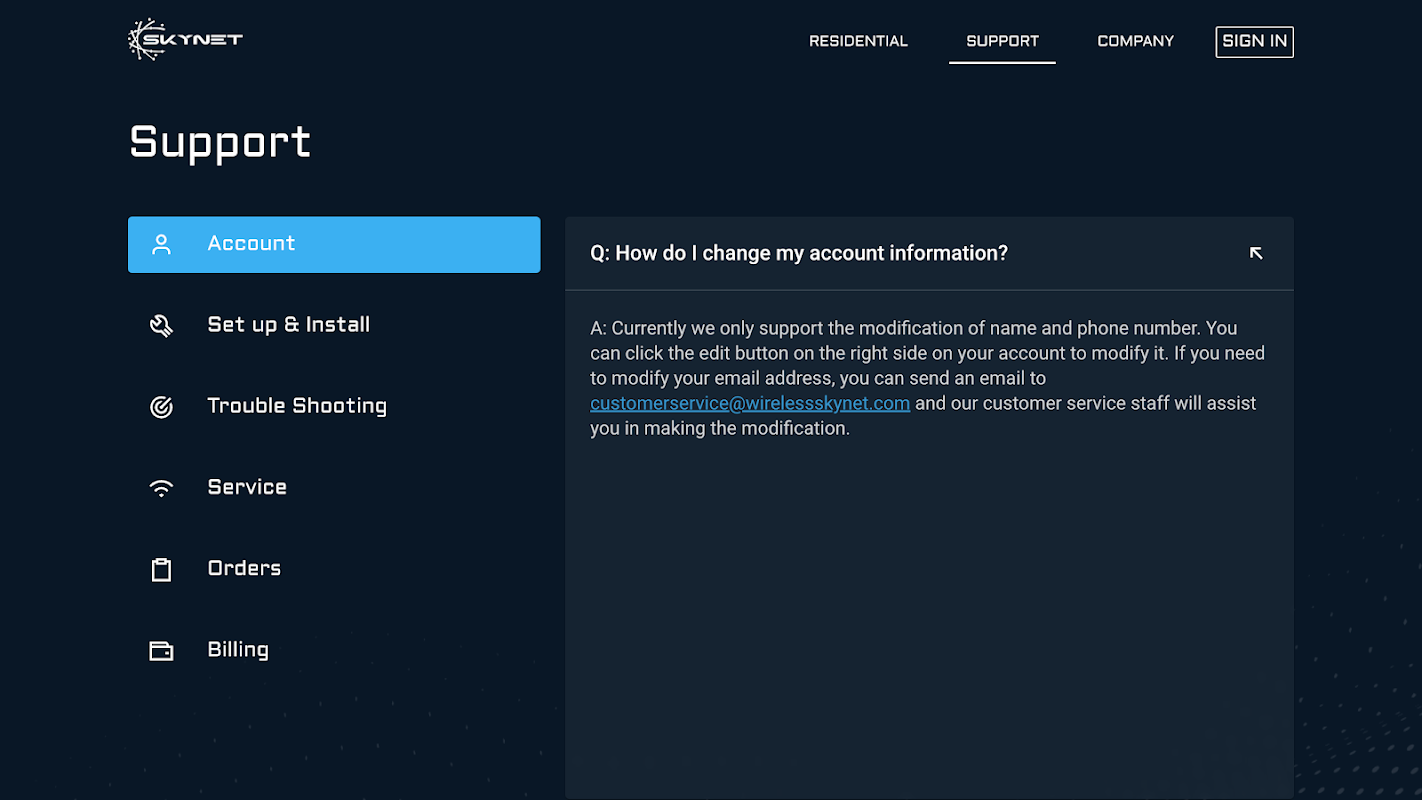 当社は、SkyNet インターネット サービスを家庭や企業に提供する業界をリードするテクノロジー企業です。