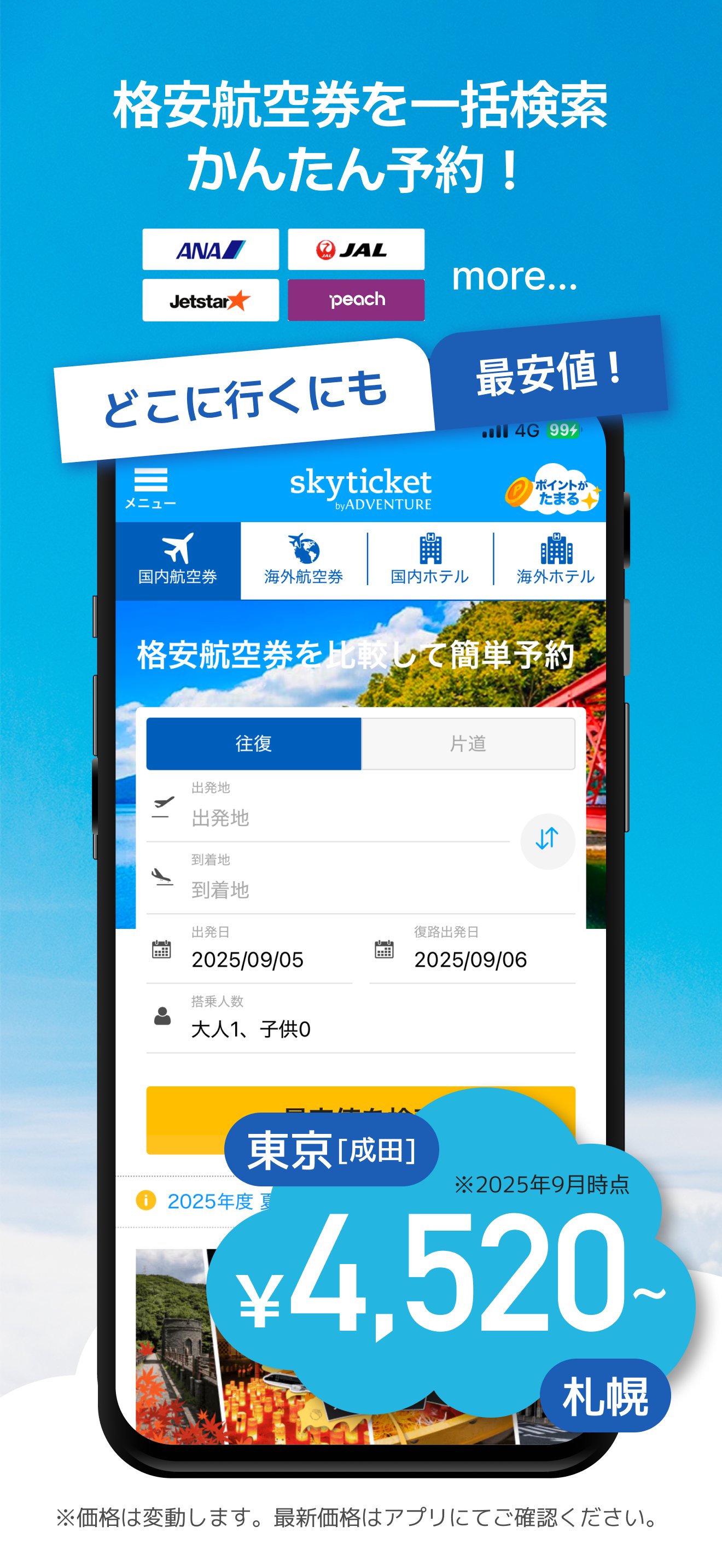 << 格安航空券・ホテル・レンタカー・高速バス予約サイト「skyticket(スカイチケット)」のアプリ版 >>
