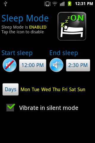 スリープモードアプリケーションを使用すると、サイレントモードの時間を設定できるようになります。