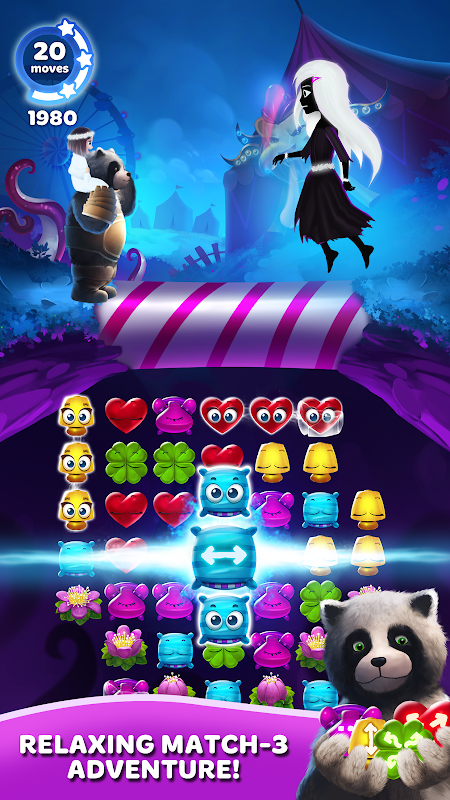 Slumber Match(別名 Calming Lia)でバオとリアと一緒に魔法のパズルアドベンチャーに乗り出しましょう!この魅力的なマッチ 3 ゲームは、深海や不気味なサーカスのような夢のような世界を案内します。 3 つ以上のシンボルをスライドさせて一致させることで、バオがリアの悪夢を落ち着かせ、彼女の夢を救うのを手伝ってください。各レベルでは、新しいチャレンジと隠された宝物を発見する機会が提供されます。