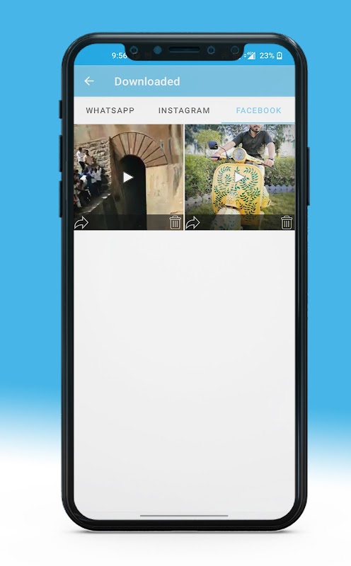 簡単にWhatsAppステータス、Instagram(リール、投稿、ストーリー)、Facebook(投稿、ビデオ)をダウンロードし、WhatsAppで直接メッセージなしで送信します。