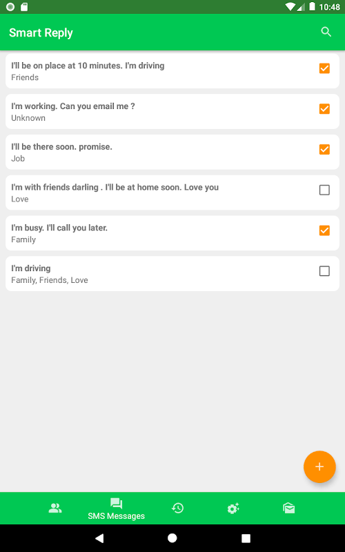 5. In SMS History you'll see sent messages. Call phone numbers / contacts directly form App!