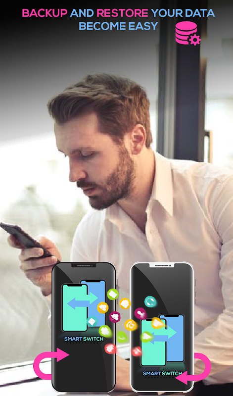 Smart switch PRO 2019 is an app to backup and it helps transfer mobile data and switch from phone to another over WiFi network. Now you can copy data and past it from one phone to another with smart switch restore PRO . Smart switch PRO is a great tool for backup and recovery of your data to easily copy data from the old device to the new onein one click.