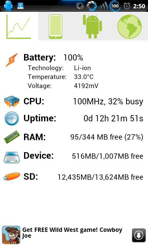Each tab is full of information such as uptime, model name and number, Android build, CPU usage and more - we are giving you more flexibility and information that any other free system application. Smart System Info can be used with all popular Android smartphones and tablets - from Android version 2.1 and up. With our app, you can have all the system info that you will ever need at your fingertips.
