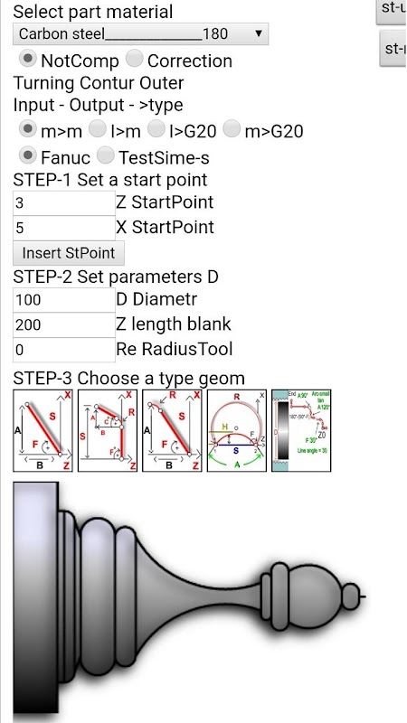 Диалоговое программирование токарных станков с ЧПУ с помощью смартфона .Бесплатная интернет версия подключите интернет . Не требует больших затрат и лишних усилий . Идеально подходит для работы и обучения . Можно быстро произвести сложные вычисления и сохранить текст программы в директории / storage /MODULE_KJ/CNC.