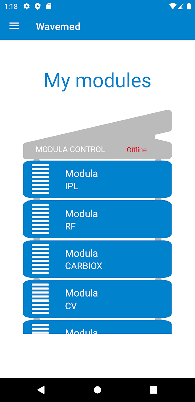 Wavemed 4.0を使用すると、スマートフォンをWavemedModulaデバイスとインターフェースできます。アプリケーションには2つのインターフェースがあります。