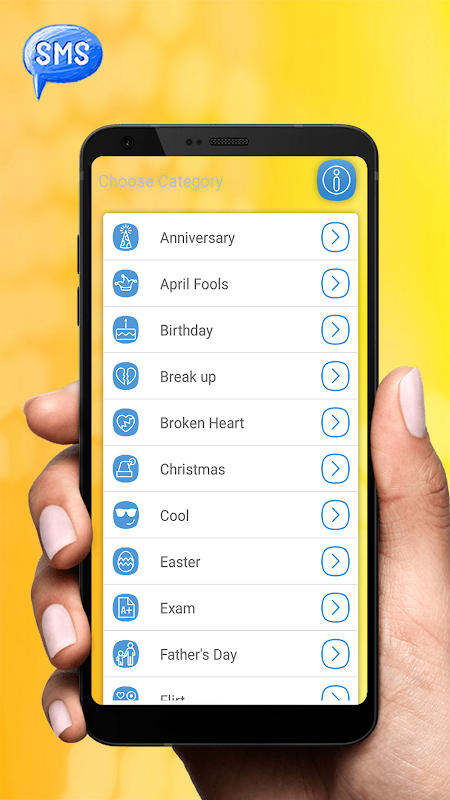 ✍SMSコレクション最新のメッセージ - SMS図書館✍をインストールし、ボーイフレンドやガールフレンドに最もロマンチックな愛のメッセージを送ってください!我々は、すべてのイベントに使用できる最高のオフラインSMSコレクションを提示することを誇りに思っています!完璧な父の日のステータスを見つけるか、あなたの指が交差していると言う幸運のメッセージを送ってください!壊れた心臓の引用符から、あなたの一日になるかわいい友情のテキストメッセージまで、すべての機会のメッセージを選んでください。最高の動機づけメッセージアプリがついに市場に出ているので、あきらめることはできません!新しい一日ごとに面白いジョークのSMSを選び、肯定的なエネルギーを広げる!そして、あなたに「あなたに誕生日おめでとう」と言う特別な言葉を考える必要はありません。私たちの誕生日からメッセージの収集を希望する行を選んでください!世界のすべての運を願って試験の成功のメッセージを送ることをためらうことはありません!