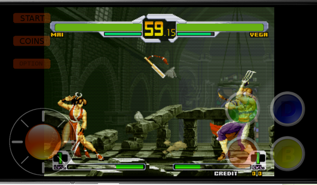 ゲームプレイは KOF シリーズ(特に The King of Fighters 2002)に基づいており、同じ 4 つのボタン構成と多くの同じテクニックを使用しています。ただし、このゲームはチームバトル形式ではなく、従来のラウンドベースの 1 対 1 形式に従います。各試合は、プレイヤーのキャラクターと対戦相手との対話の交換から始まります。ゲームに導入された 1 つの新しいテクニックは、プレイヤーが前方ダッシュで攻撃をキャンセルできるフロントグランドステップです。プレイヤーは、対戦相手の攻撃からガードしながらこのテクニックを実行でき、パワーゲージを 1 レベル消費します。