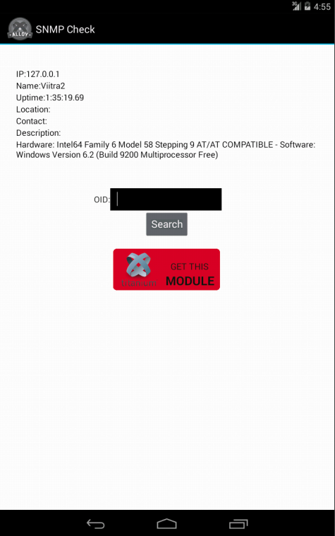SNMP Check is an application to poll various devices and collect, store and display the information visually. If you want to build your own Titanium SNMP application you can download the module here: https://marketplace.appcelerator.com/apps/9238.