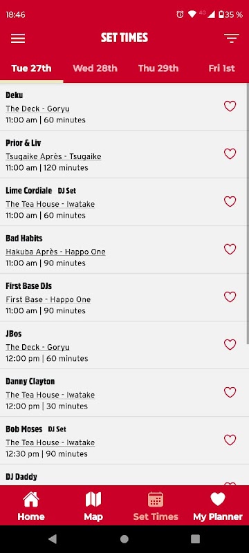 • アーティストセットを「お気に入り」にして毎日のスケジュールを作成