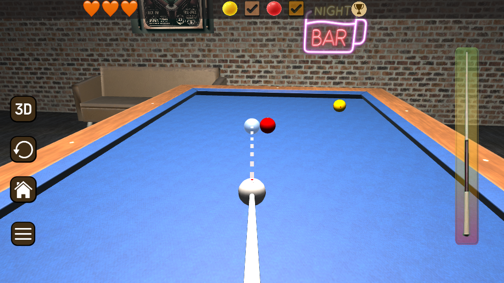 リアルな物理エンジン:正確なボールの衝突、スピン、パワーコントロールにより、すべてのショットがリアルな感覚を再現します。このゲームは現実のビリヤードの仕組みを完璧にシミュレートし、やりがいのあるやりがいのあるゲーム体験を保証します。