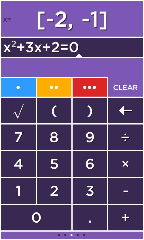 Solveには、それぞれ独自の色を持つ4つの異なる計算機を選択する4つのタブがあります。結果をクリアせずに、数字を掛けて、チップを計算し、平方根を見つけましょう!