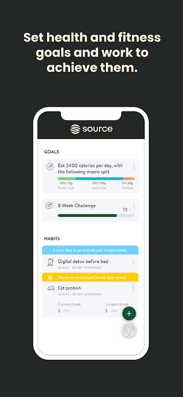 Source Performance アプリを使用すると、フィットネスと健康の目標を達成するために特別に設計されたワークアウト プログラムにアクセスできるようになります。コーチの助けを借りて、トレーニング、栄養、生活習慣、測定値、結果をすべて追跡および追跡できます。
