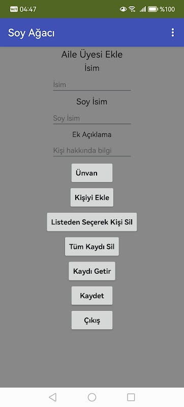 当社はあなたの個人データを処理しません。入力した情報はあなた自身の携帯電話に保存され、アプリケーションがあなたの情報を第三者に送信することはありません。家系図アプリケーションを使用すると、家族のリストを作成し、リストを編集できます。
