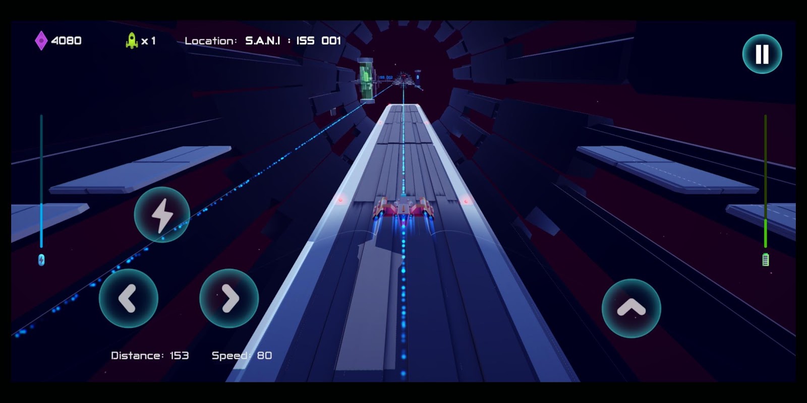 青いプラズマトラックの上を超音速スペースジェットで宇宙を飛びます。宇宙ゴミ、小惑星、レーザー、地雷を避けながら、新しい惑星に到達しましょう。燃料とブースターポッドを集めて、ジェットを走らせ続けよう。コインを貯めて、新しくアンロックされたスペースジェットを購入し、より速く舞い上がりましょう。