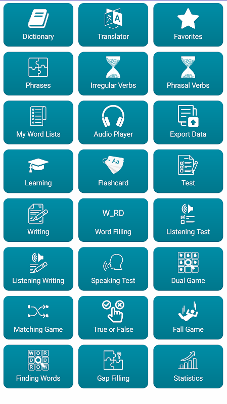 • 表に混在する16の単語とそれに相当する単語を探して、隙間時間に楽しみながら学習できます。