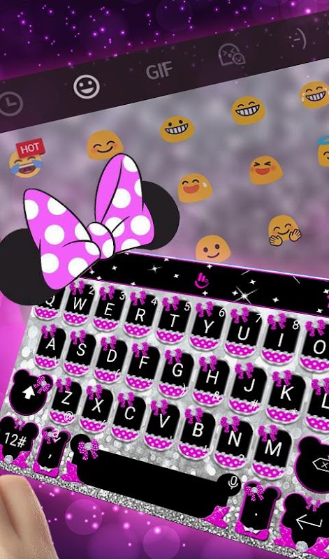スマート&ファーストスパークリングMinny Bowknotキーボードテーマ。絵文字、ステッカー無料!