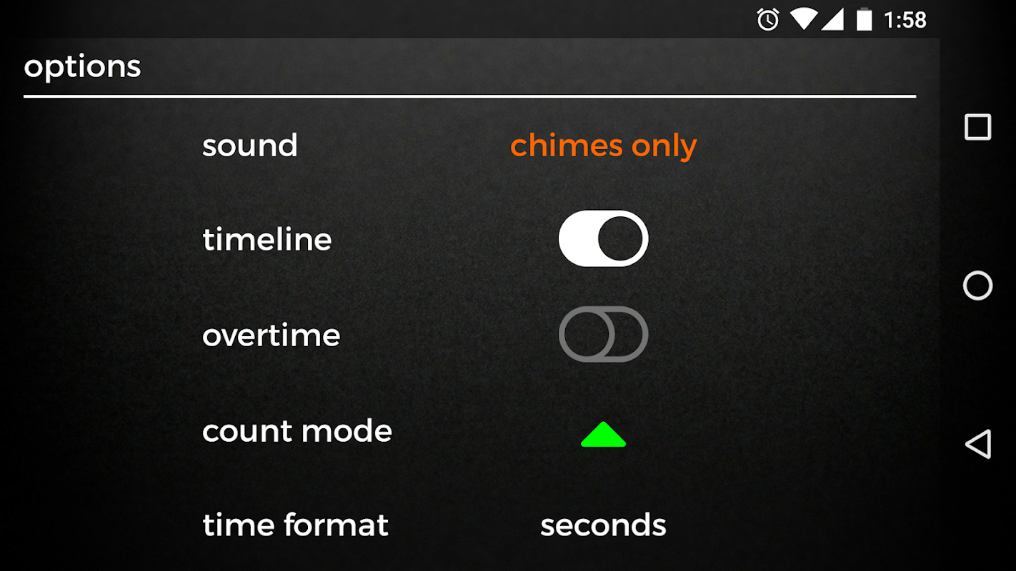 In case you need more warning times, up to 3 customizable warnings are available. Now you can make sure you have enough time for a wrap-up/ conclusion and the Q&A. In case you do go overtime, overtime mode will let you know and shows you by how much.