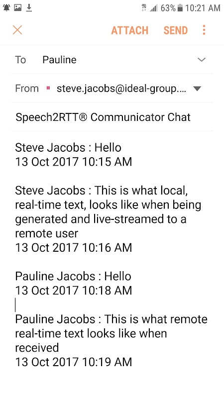 Speech2RTT® Communicator, an IDEAL Group innovation, is an Android-based mobile app that handles all of the following processes, locally, on smart phones: