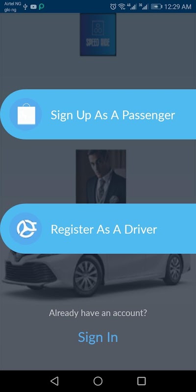SpeedRide allows the users to sign up as either a driver or a passenger.