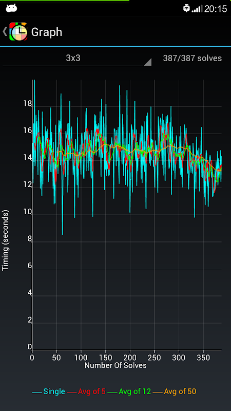 • Display your singles, average of 5, 12 and 50 in line graph.