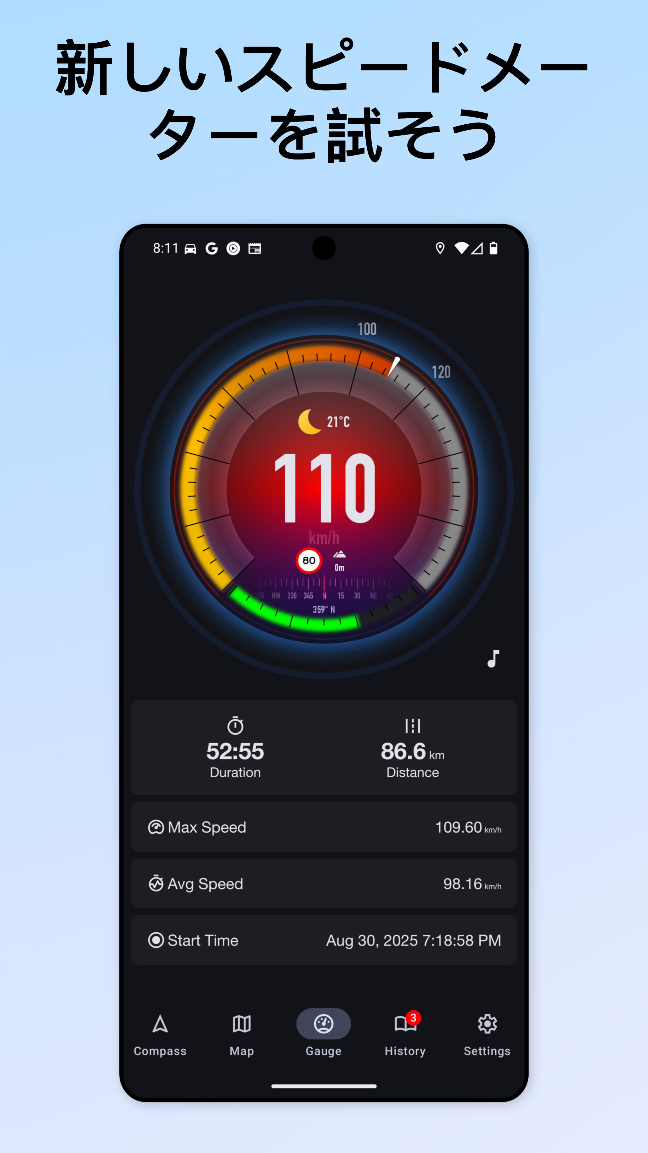 GPSスピードメーター&コンパス|ルート記録&地図表示 2.1.1