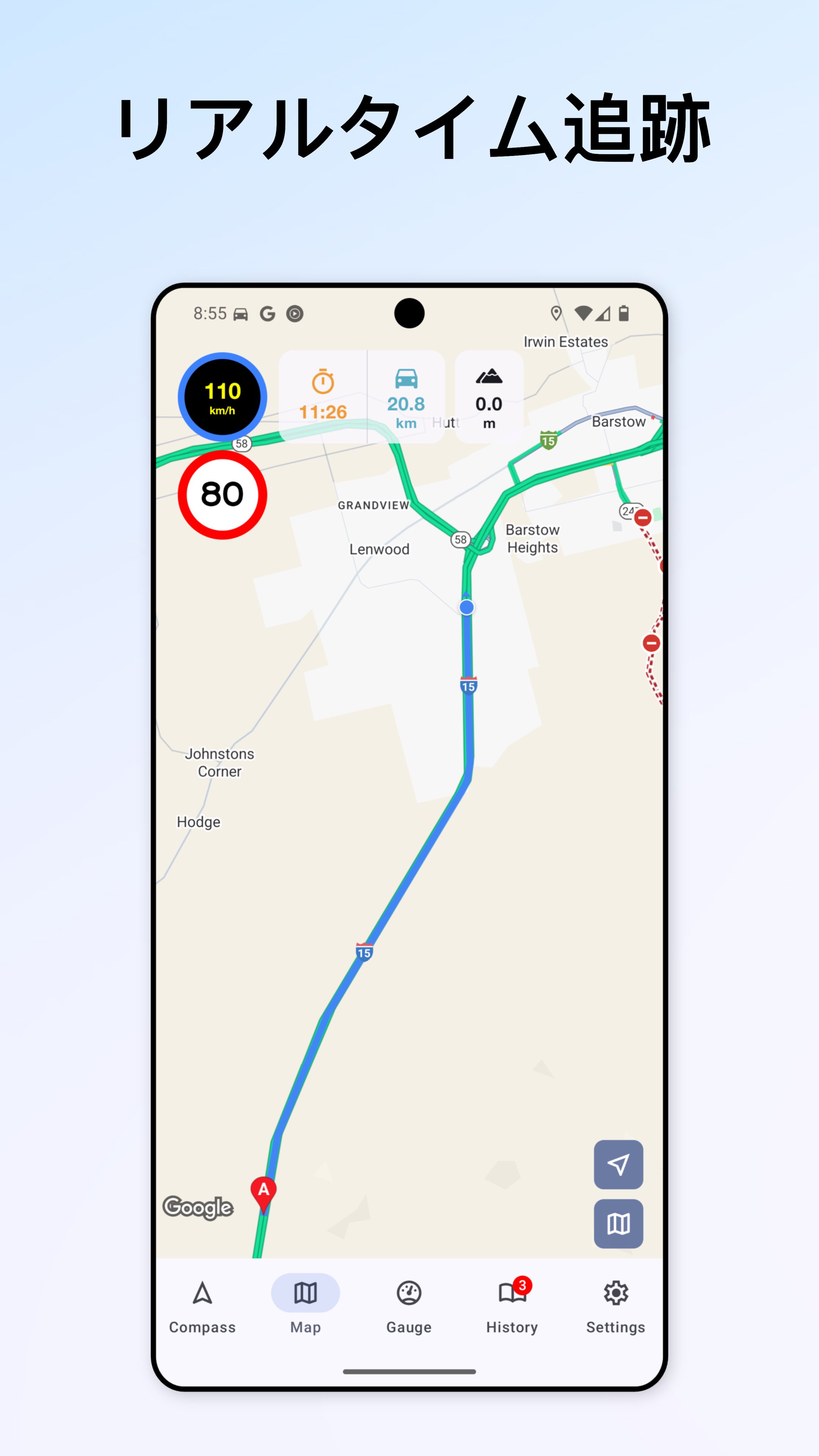 Speedometer GPS & Compass は、GPSトラッカー、ルート記録機能、スピードメーター、コンパス を1つにまとめた便利なオールインワンアプリです。