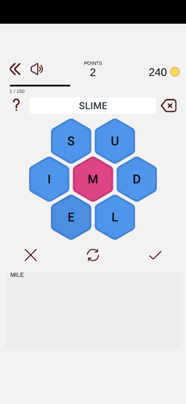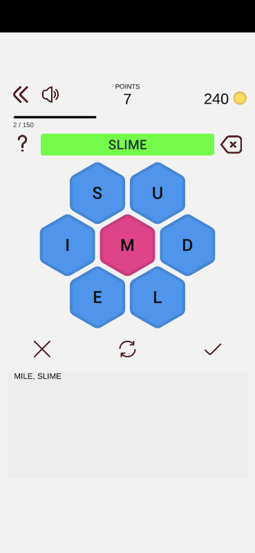 - 単語を構成する文字のすべてを使用する必要はありません。ただし、中央の文字は必須です。