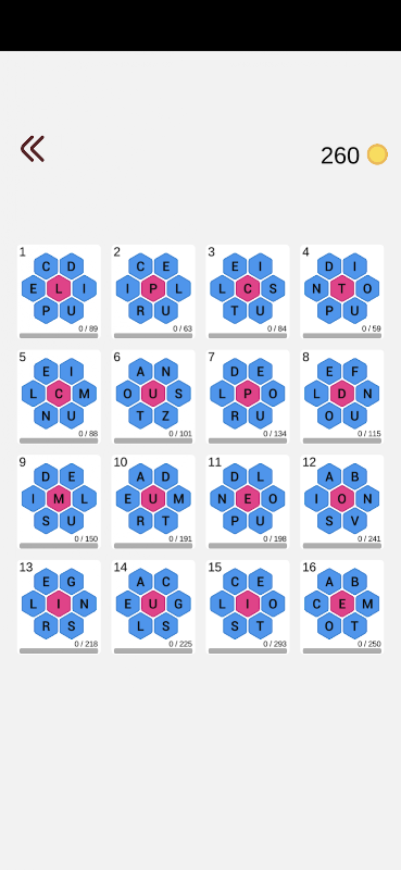 - すべての可能な単語が見つかった時点でゲーム終了です。