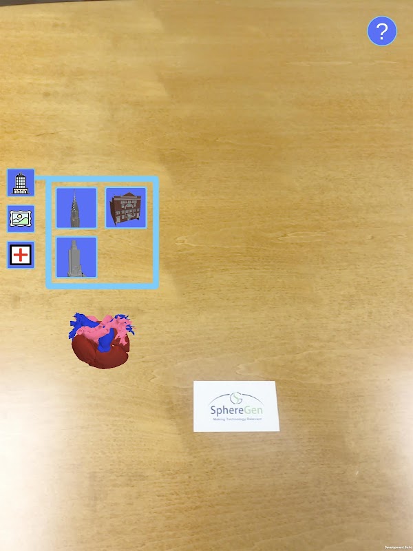 あなたはARモデルを配置するためにこのアプリケーションを使用することができます。アプリケーションが起動したら、左側のボタンを使用して表示したいモデルを選択します。次に、携帯電話のカメラを動かして、SphereGen名刺の裏側がはっきり見えるようにします。選択したモデルは名刺に固定されて表示されます。