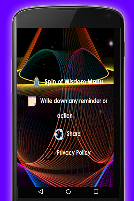 spin of wisdom, inspiration, and good life is designed to uplift, inspire, and empower you to remember the very best in yourself and to open the floodgates of wisdom, light, and joy within you. This app point you in the direction of discovering the wisdom with powerful questions and answers with deep inspiration.