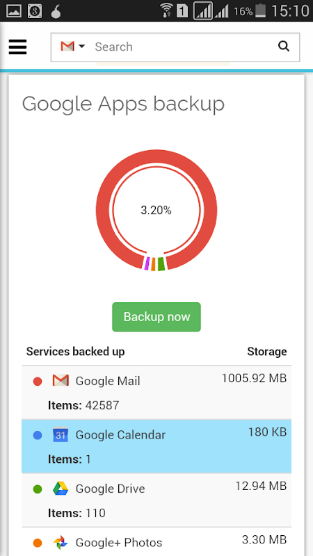 Spinbackup - Backup & Restore helps you to back up and restore Google Apps data such as Gmail, Google Drive, Google Calendar, Google Contacts, Google+ Photos and Google Tasks to an independent secure storage.