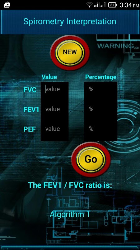 あなたの患者は閉塞性または拘束性肺疾患を持っている場合、あなたの肺活量計の読みに基づいて、このアプリはあなたに伝えます。