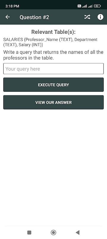 SQL Master は、ユーザーが外出先で構造化照会言語 (SQL) を学習および練習するのに役立つ Android デバイス用のモバイル アプリです。ユーザー フレンドリーなインターフェイスとインタラクティブなレッスンを備えたこのアプリでは、SQL の基礎を簡単に理解し、実践的な演習やクイズを通じてスキルを身に付けることができます。初心者でも SQL の経験者でも、アプリの包括的なコンテンツと適応学習システムにより、自分のペースでスキルを向上させることができます。今すぐ SQL Master をダウンロードして、SQL マスターになるための旅を始めましょう!