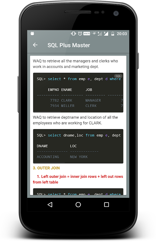 If you are a beginner and looking for a tutorial to learn SQL*Plus or Oracle DBMS, install this app now and start learning.